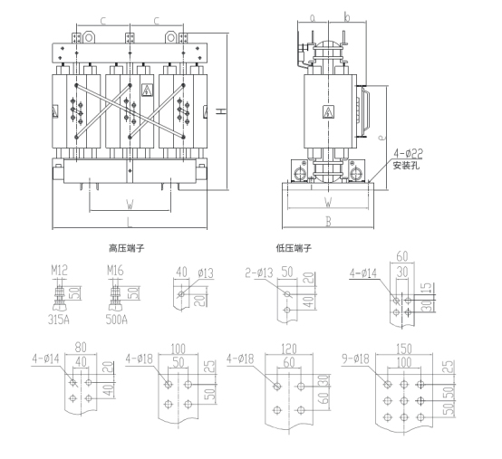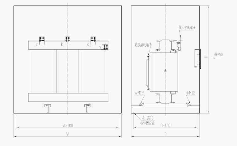 附件:門板上裝有控制接線箱;門板上還可裝溫度顯示控制器,有載調(diào)壓產(chǎn)品門板上還可裝有載調(diào)壓控制器。