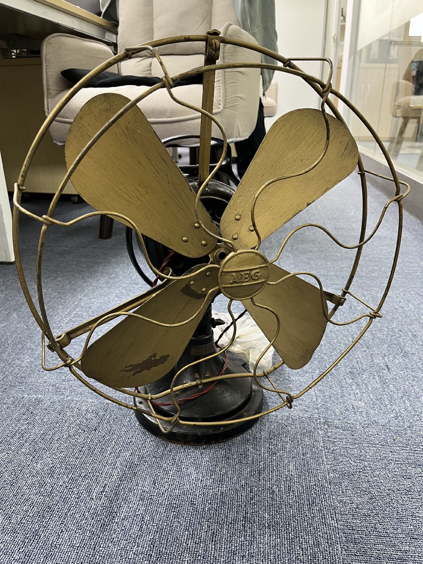 極具收藏價(jià)值的德國(guó)AEG牌通用電氣公司制造電風(fēng)扇,罩子和機(jī)芯為全銅材質(zhì),現(xiàn)在絕對(duì)算的上是古董級(jí)風(fēng)扇了。機(jī)械風(fēng)扇起源于1830年,一個(gè)叫詹姆斯·拜倫的美國(guó)人從鐘表的結(jié)構(gòu)中受到啟發(fā),發(fā)明了一種可以固定在天花板上,用發(fā)條驅(qū)動(dòng)的機(jī)械風(fēng)扇。這種風(fēng)扇轉(zhuǎn)動(dòng)扇葉帶來(lái)的徐徐涼風(fēng)使人感到?jīng)鏊?,但得爬上梯子去上發(fā)條,很麻煩。1880年,美國(guó)人舒樂(lè)首次將葉片裝在電動(dòng)機(jī)上,再接上電源,葉片飛速轉(zhuǎn)動(dòng),陣陣涼風(fēng)撲面而來(lái),這就是世界上第一臺(tái)電風(fēng)扇。